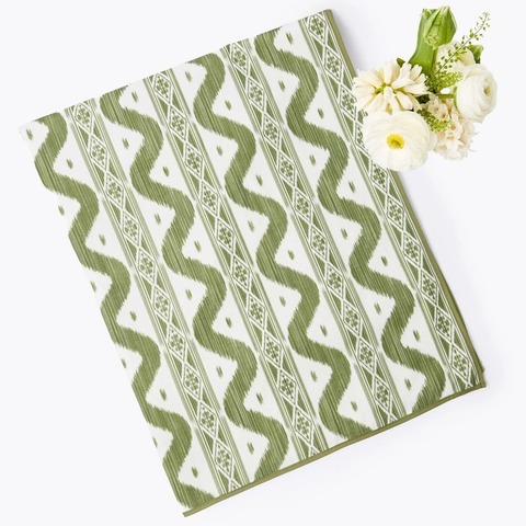 Großhandel maßge schneiderte stilvolle Polyester Tischdecke mit grünem Ikat gestreiftem Muster für moderne Abendessen und Versammlungen im Freien