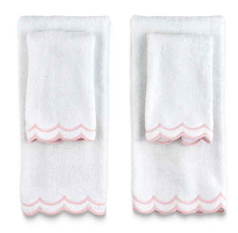 Moderne rosa Badet ücher mit weißer Jakobs muschel Design hand gefertigte Baumwolle für Baby party benutzer definierte Stickerei Heimgebrauch